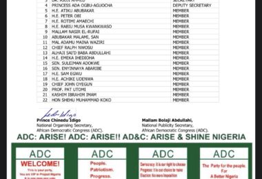 Others are: Barr. Dauda Jinadu as State Legal Adviser, Hon. James Obasa as State Financial Secretary, Chief Ayobami Ojedokun as State Organizing Secretary, Niyi Lekan Ogunbowale as Youth Leader, Hon. Kazeem Abidemi Alarape as State Treasurer and Dr. Oke Adebowale as Coordinator on Elections matter/ INEC Liaison.