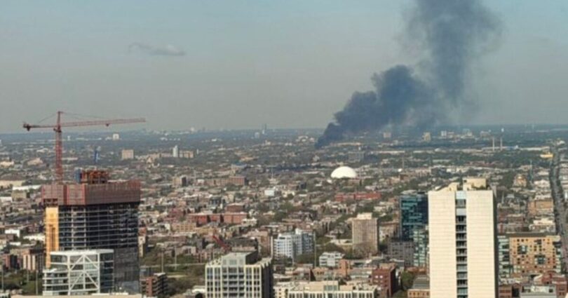 A huge fire has erupted in Chicago, images shared online today show.