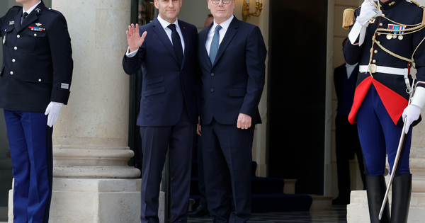 (260417) — PARIS, April 17, 2026 (Xinhua) — French President Emmanuel Macron (L) welcomes British Prime Minister Keir Starmer at Elysee Palace, in Paris, France, April 17, 2026. French President Emmanuel Macron said Friday that Iran’s announcement of reopening Strait of Hormuz goes in right direction.