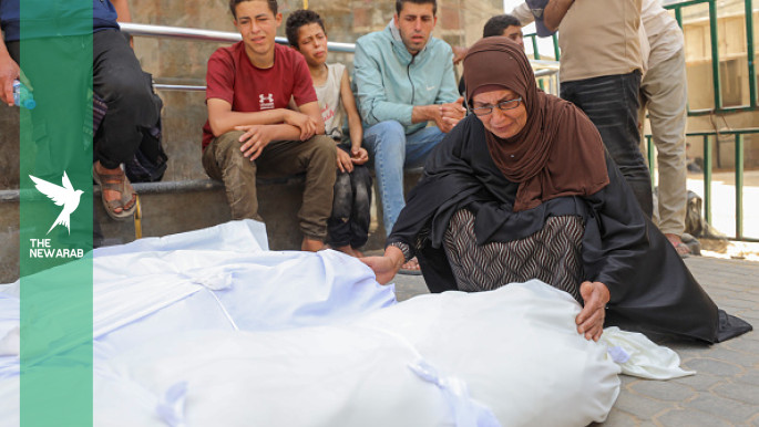Relatives mourn the loss of two Palestinian brothers who were killed in an Israeli drone strike in Beit Lahia in central Gaza [Getty]