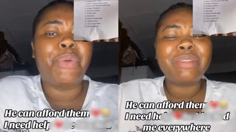 According to her, everything was going smoothly until her family presented the list of items required for their traditional marriage.