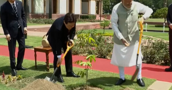 Both the leaders were also seen planting a tree.