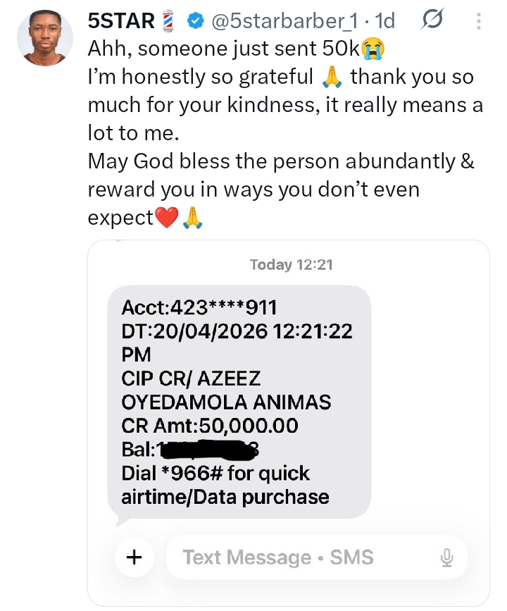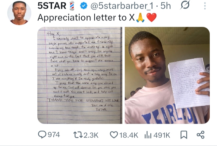 Following the kind gestures from charitable Nigerians, the young man took to X to appreciate those who had been kind enough to help him.