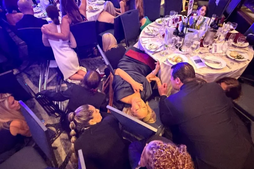 The silence was broken when the doors crashed open to the giant ballroom at the Washington Hilton, where some 2,600 journalists and their guests – dressed with rare pomp in tuxedos and gowns – had just sat down for the salad courses and glasses of wine. President Donald Trump was seated with first lady Melania Trump, Vice President JD Vance and other dignitaries at a long head table.