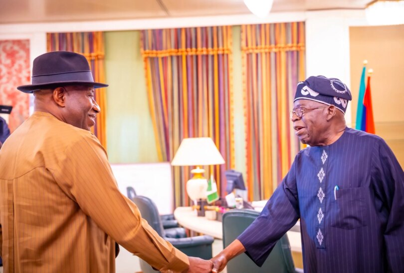 President Bola Tinubu on Wednesday held a closed-door meeting with former President Goodluck Jonathan at the Presidential Villa, Abuja.