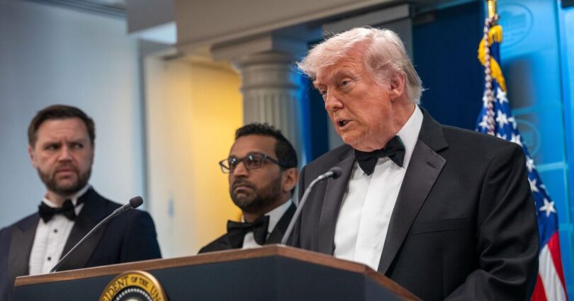 Journalists attending the yearly event – attended for the first time by Mr Trump during his presidency – were seen ducking under tables as officers stormed the room to bring members of the presidential cabinet to safety. Mr Trump held a brief press conference after the incident, saying a suspect had been taken into custody.