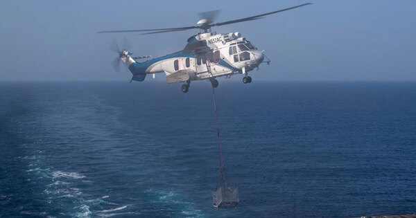 In a post on X, CENTCOM said, ‘Aircraft carrier USS Abraham Lincoln (CVN 72) receives supplies during a vertical replenishment in the Arabian Sea with supply ship USNS Carl Brashear (T-AKE 7), April 18. Abraham Lincoln is currently operating in the Middle East enforcing the US naval blockade on vessels attempting to enter and depart Iranian ports.’