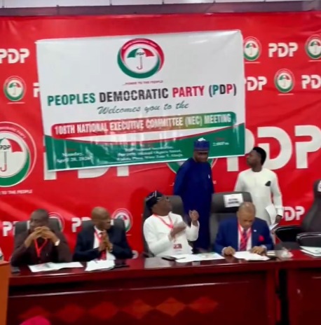 The Minister of the Federal Capital Territory, Nyesom Wike, is presiding over the first People’s Democratic Party (PDP) National Executive Committee (NEC) meeting at the party’s headquarters, Wadata Plaza, Abuja, on Monday, following the recent unsealing of the secretariat by the police. According to a video obtained by TVC News……