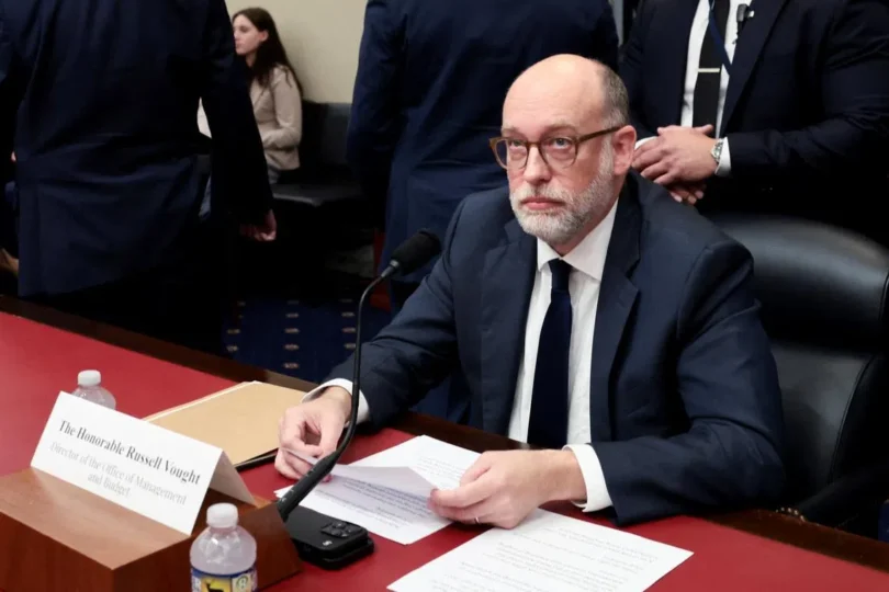 Vought promoted Trump’s budget proposal for the fiscal year beginning October 1 as aimed at reducing spending. He promoted Trump’s 2025 tax-cut-and-spending package known as the “One Big Beautiful Bill Act” as an initiative that achieved $2 trillion in mandatory savings through cuts to Medicaid health coverage and food assistance to low-income families.