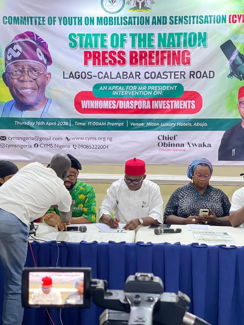 The Committee of Youth on Mobilisation and Sensitisation (CYMS) has called on President Bola Tinubu to urgently intervene in the dispute involving Winhomes Global Services Limited and diaspora investors over the Lagos-Calabar Coastal Road project.